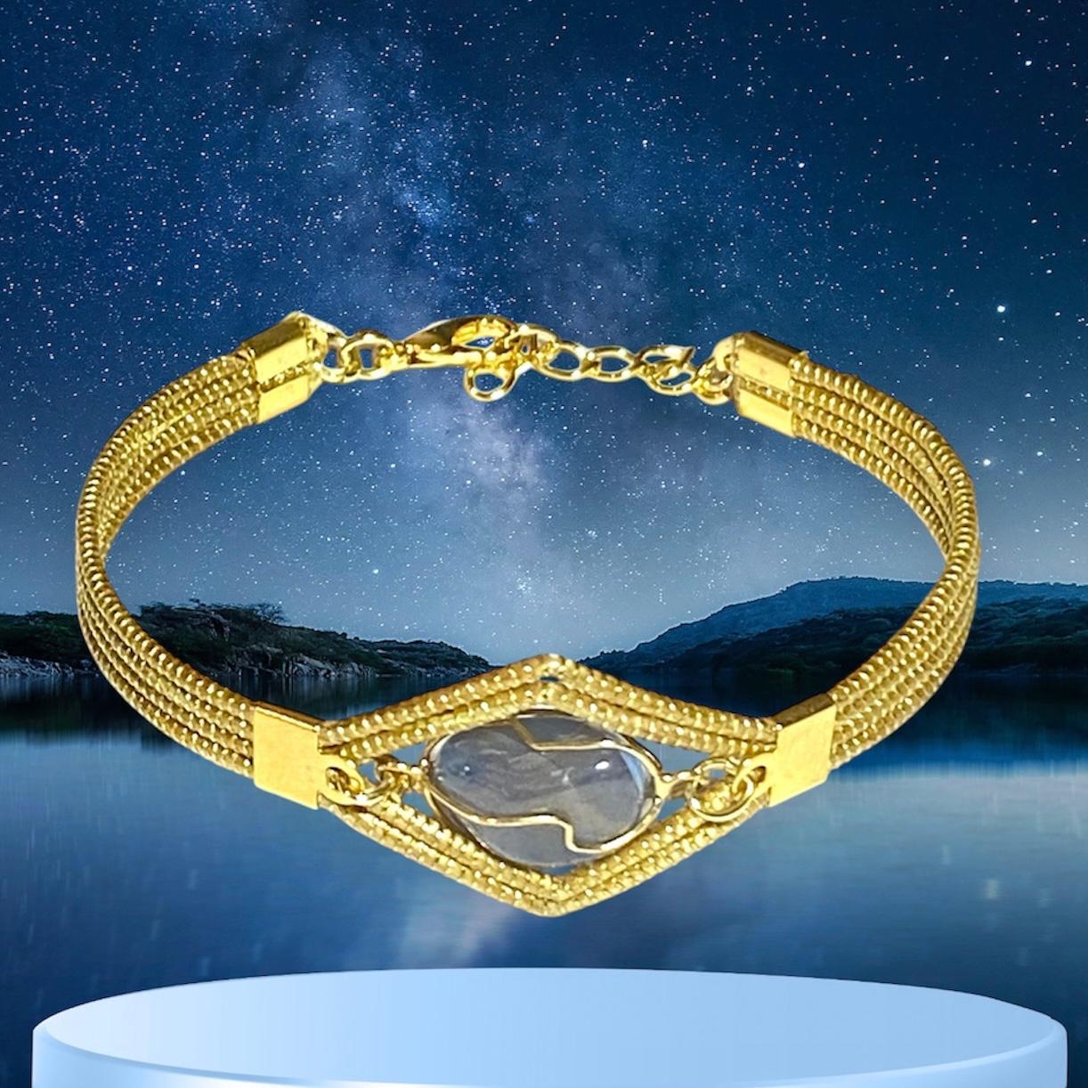 Bracelet en or végétal orné d'une aventurine bleue claire, chaînette plaquée or.